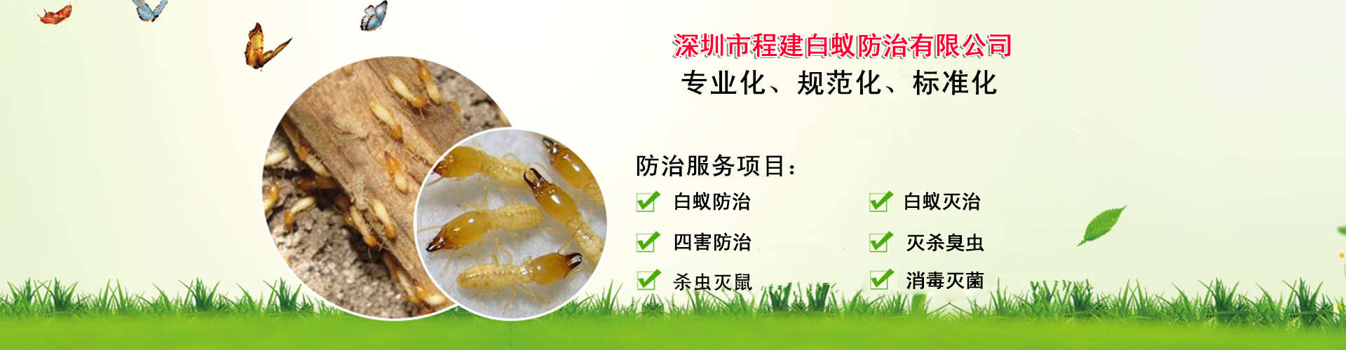 深圳市程建白蟻防治中心有限公司:致力于白蟻防治工程、深圳市白蟻防治公司、預(yù)防白蟻工程、建筑工程白蟻預(yù)防、白蟻滅治、殺白蟻、滅白蟻、治白蟻、除白蟻、防白蟻,白蟻消殺、預(yù)防白蟻、深圳市殺白蟻公司、有害生物防制:深圳市殺蟲(chóng)公司、深圳消殺公司、深圳市消殺中心、除四害、白蟻如何根治、深圳市消毒公司、家里發(fā)現(xiàn)白蟻怎么辦、滅蟑螂、 工廠(chǎng)殺蟲(chóng)、物業(yè)殺蟲(chóng)、辦公室消殺、工業(yè)園殺蟲(chóng)等、專(zhuān)注于為客戶(hù)民提供專(zhuān)業(yè)解決蟲(chóng)害方案,通過(guò)技術(shù)團(tuán)隊(duì)創(chuàng)新研發(fā)新技術(shù)和學(xué)習(xí)傳統(tǒng)技術(shù)相結(jié)合,針對(duì)客戶(hù)需求,為客戶(hù)量身打造更加全面的白蟻防治、白蟻滅治、深圳市殺蟲(chóng)、深圳消殺、深圳市殺白蟻等有害生物防制施工措施。